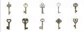 Zestaw różnych ozdobnych klawiszy na białym tle