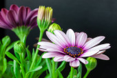 Zbliżenie osteospermum, lub afrykańska stokrotka, kwiat. Purpurowa, makro fotografia