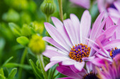 Zbliżenie osteospermum, lub afrykańska stokrotka, kwiat. Purpurowa, makro fotografia