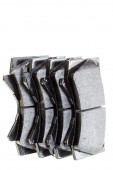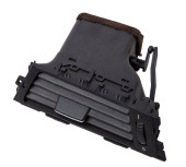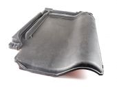 Tkanina podszewka szarego bagażnika samochodowego z siatkową kieszenią jako oddzielna część na białym, izolowanym tle w studiu fotograficznym na sprzedaż lub wymianę w warsztacie.