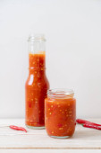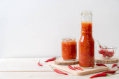 Zdjęcie "chili lub sos chili w butelce i słoiku na wwod tle" może być wykorzystywane do celów osobistych i komercyjnych zgodnie z warunkami zakupionej licencji Royalty-free. Obraz jest dostępny do pobrania w jakości wysokiej rozdzielczości do 5760x3840.