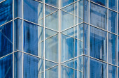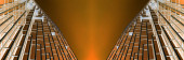 architektoniczny abstrakcyjny fragment ściany żółtego nowoczesnego budynku na niebieskim tle