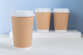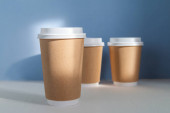 Kubek na wynos z cieniami liści, przestrzeń do kopiowania
