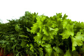 pocięte kawałki pomidorów i koperkiem i pietruszką