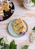 Zdjęcie "Ciasto biszkoptowe ze śmietaną, impregnowane kokosem i ananasem, ozdobione kwiatami lilii." może być wykorzystywane do celów osobistych i komercyjnych zgodnie z warunkami zakupionej licencji Royalty-free. Obraz jest dostępny do pobrania w jakości wysokiej rozdzielczości do 5760x3840.