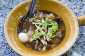 Francuska zupa cebulowa z okruszkami chleba i serem podawane w glinianym talerzu