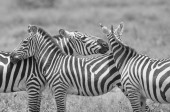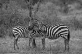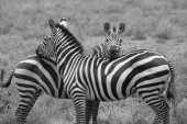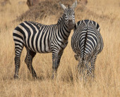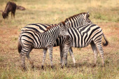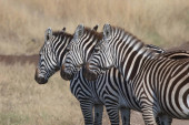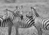 Zdjęcie "Grupa zebr stoi w suchej trawie sawanny. " może być wykorzystywane do celów osobistych i komercyjnych zgodnie z warunkami zakupionej licencji Royalty-free. Obraz jest dostępny do pobrania w jakości wysokiej rozdzielczości do 5760x3840.