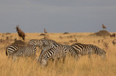 Zdjęcie "Grupa zebr stoi w suchej trawie sawanny. " może być wykorzystywane do celów osobistych i komercyjnych zgodnie z warunkami zakupionej licencji Royalty-free. Obraz jest dostępny do pobrania w jakości wysokiej rozdzielczości do 5760x3840.