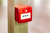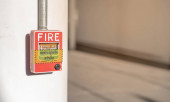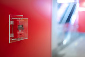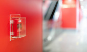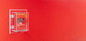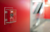 Czerwony alarm przeciwpożarowy na czerwonej ścianie w Bangkoku metra.