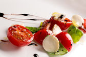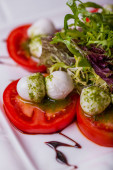 Włoska sałatka Caprese z pomidorem i serem w białym talerzu