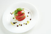 Włoska sałatka Caprese z pomidorem i serem w białym talerzu