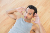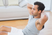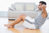 Zdjęcie "Młody mężczyzna robi brzuszne chrupki w salonie" może być wykorzystywane do celów osobistych i komercyjnych zgodnie z warunkami zakupionej licencji Royalty-free. Obraz jest dostępny do pobrania w jakości wysokiej rozdzielczości do 5760x3840.