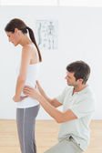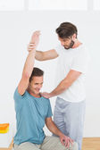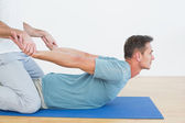 mężczyzna terapeuta pomoc człowieka z ćwiczenia rozciągające
