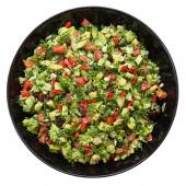Smaczny posiłek guacamole w szklanej misce na białym tle