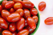 Świeże czerwone pomidory wiśniowe na jasnym tle
