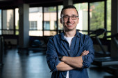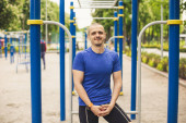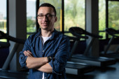 Portrait of young handsome Scandinavian man with hoodie ready for exercising at the gym