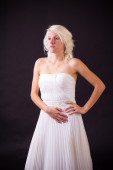 uśmiechający się sexy dziewczyna z krótka sukienka fiolet