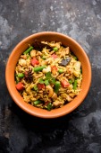 Wegetariańskie danie ryżowe z selerem strzał na białym tle