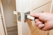 Zdjęcie "Ręka otwiera drzwi. Półotwarte drzwi. Wnętrze. Minimalizm. Eleganckie meble. Drzwi do pokoju." może być wykorzystywane do celów osobistych i komercyjnych zgodnie z warunkami zakupionej licencji Royalty-free. Obraz jest dostępny do pobrania w jakości wysokiej rozdzielczości do 5760x3840.