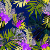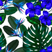 Hawajski kwiatowy bezszwowy wzór z akwarelą tropikalnych liści i kwiatów. Egzotyczny hibiskus. Tropikalny letni druk.