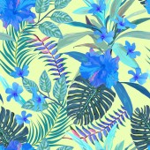 Zdjęcie "Hawajski kwiatowy bezszwowy wzór z akwarelą tropikalnych liści i kwiatów. Egzotyczny hibiskus. Tropikalny letni druk." może być wykorzystywane do celów osobistych i komercyjnych zgodnie z warunkami zakupionej licencji Royalty-free. Obraz jest dostępny do pobrania w jakości wysokiej rozdzielczości do 5760x3840.