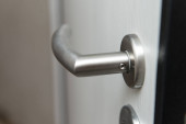 Zdjęcie "Otwórz otwarte drzwi w pustej, strzeżonej, korporacyjnej strefie biznesowej, nikt, zamknięcie klamki od strony zamka. Drzwi otwarte, ochrona budynku biurowego abstrakcyjna koncepcja. Proste wejście i korytarz" może być wykorzystywane do celów osobistych i komercyjnych zgodnie z warunkami zakupionej licencji Royalty-free. Obraz jest dostępny do pobrania w jakości wysokiej rozdzielczości do 5760x3840.
