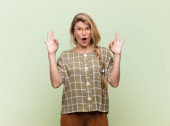 młoda ładna Latynoska kobieta czuje się zszokowany, szczęśliwy, zdumiony i zaskoczony, patrząc na bok z otwartymi ustami
