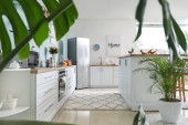 Wnętrze nowoczesnej kuchni ze stylowym stołem