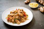 Zdjęcie "smażony kurczak z imbirem - azjatycki styl jedzenia" może być wykorzystywane do celów osobistych i komercyjnych zgodnie z warunkami zakupionej licencji Royalty-free. Obraz jest dostępny do pobrania w jakości wysokiej rozdzielczości do 5760x3840.