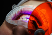 dentysta studiujący panoramiczną fotografię stomatologiczną na laptopie