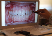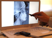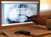 Badanie dentystyczne panoramiczny obraz ludzkich zębów w komputerze