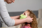 Zdjęcie "Mała dziewczynka leżąca w łóżku i rozpaczliwie płacząca z gorączką, jest chora. Matka dotyka policzka córki. Matka pociesza dziecko. Porwany z tyłu kobiety. koncepcja wspomagająca dziecko" może być wykorzystywane do celów osobistych i komercyjnych zgodnie z warunkami zakupionej licencji Royalty-free. Obraz jest dostępny do pobrania w jakości wysokiej rozdzielczości do 5760x3840.