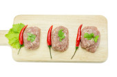 kurczak z pikantnym czarnym składnikiem papryki chili na białym tle