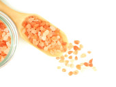 Czerwona fasola nerki w drewnianej łyżeczce nad białą miską izolowane na białym tle. Widok z góry z miejsca kopiowania