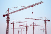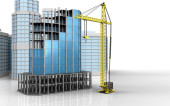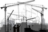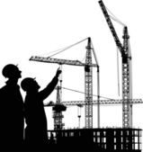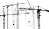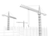 Koncepcja ręcznego rysowania budynku z obrazem dźwigów izolowanym na białym tle