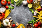 Jedzenie gotowanie tło na czarnym stole widok góry.