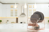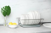 Czyste naczynia na suszarce w nowoczesnym wnętrzu kuchni
