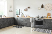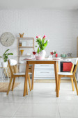 Zdjęcie "Wnętrze nowoczesnej kuchni ze stylowym stołem" może być wykorzystywane do celów osobistych i komercyjnych zgodnie z warunkami zakupionej licencji Royalty-free. Obraz jest dostępny do pobrania w jakości wysokiej rozdzielczości do 5760x3840.