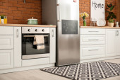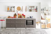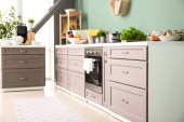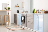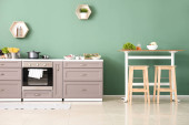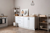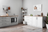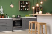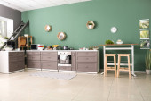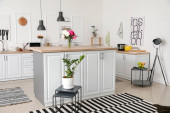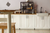 Zdjęcie "Wnętrze nowoczesnej kuchni ze stylowym stołem" może być wykorzystywane do celów osobistych i komercyjnych zgodnie z warunkami zakupionej licencji Royalty-free. Obraz jest dostępny do pobrania w jakości wysokiej rozdzielczości do 5760x3840.