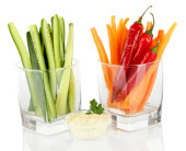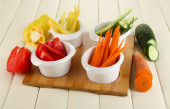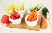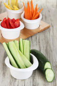 jasne świeże warzywa pokrojone w plastry w miski na drewniany stół szczegół