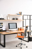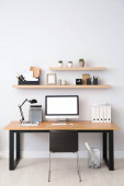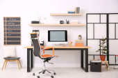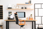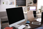 Nowoczesny komputer na stole we wnętrzu biura. Stylowe miejsce pracy