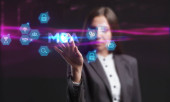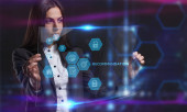 Biznes, Technologia, Internet i koncepcja sieci. Młody przedsiębiorca pracuje na wirtualnym ekranie przyszłości i widzi napis: ISO 9001