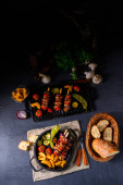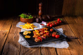 Grillowane nogi kurczaka z różnymi warzywami i ziołami.