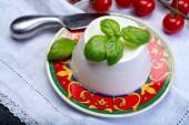 Zdjęcie "Włoski ser miękki, młody biały ser ricotta podawany ze świeżą bazylią i smacznymi dojrzałymi pomidorami wiśniowymi" może być wykorzystywane do celów osobistych i komercyjnych zgodnie z warunkami zakupionej licencji Royalty-free. Obraz jest dostępny do pobrania w jakości wysokiej rozdzielczości do 5760x3840.