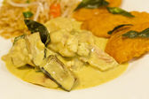 tajskie jedzenie pikantne mleko kokosowe panang kung krewetki curry z fasolą sznurek papryka i liści limonki kaffir