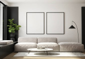 Zdjęcie "Nowoczesny apartament w czerni i bieli ze stołem jadalnym w salonie" może być wykorzystywane do celów osobistych i komercyjnych zgodnie z warunkami zakupionej licencji Royalty-free. Obraz jest dostępny do pobrania w jakości wysokiej rozdzielczości do 5760x3840.
