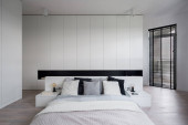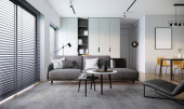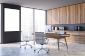 Zdjęcie "Stylowe biuro domowe z drewnianym biurkiem i korytarzem z oknem i czarną komodą" może być wykorzystywane do celów osobistych i komercyjnych zgodnie z warunkami zakupionej licencji Royalty-free. Obraz jest dostępny do pobrania w jakości wysokiej rozdzielczości do 5760x3840.