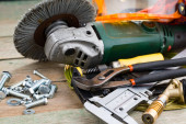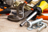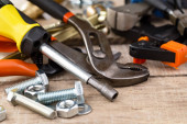Różne narzędzia na starym tle.