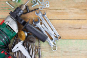 Zdjęcie "Różne narzędzia na starym tle." może być wykorzystywane do celów osobistych i komercyjnych zgodnie z warunkami zakupionej licencji Royalty-free. Obraz jest dostępny do pobrania w jakości wysokiej rozdzielczości do 5760x3840.