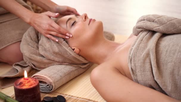 Piękna młoda kobieta relaksująca się w salonie spa widok z góry